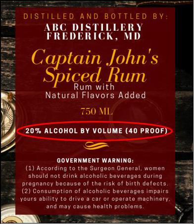 In this example, the alcohol content is expressed as a specific percentage 20% Alcohol By Volume. In addition, the alcohol content in degrees of proof (40 Proof) may be stated on a label as long as it appears in the same field of vision as the mandatory statement of alcohol content as a percentage of alcohol by volume