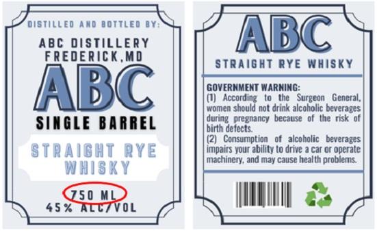 The net contents statement indicates the volume of distilled spirits in the container on which the label appears, expressed in Liters and milliliters. The word “liter” may be alternatively spelled “litre” or may be abbreviated as “L”. The word “milliliters” may be abbreviated as “ml.,” “mL.,” or “ML.”
