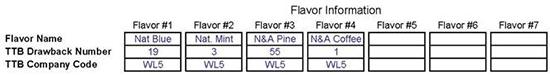 - Lorsque les arômes sont présentés pour un remboursement de taxe, leur nom doit se conformer aux exigences de la FDA (c.-à-d. naturel et artificiel), même si le TTB les considèrerait comme naturels s’ils étaient utilisés dans des boissons alcoolisées.