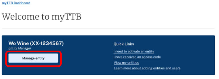 When an entity is activated, the Key Contact(s) for the entity in Permits Online are invited to become myTTB Entity Managers. After the Key Contact(s) accept an invitation to become an Entity Manager, they can: view sensitive information about your entity, add/remove users, provide access to myTTB modules and permits, and designate additional myTTB Entity Managers that do not have Key Contact status in Permits Online, at their discretion, by granting them power of attorney electronically.