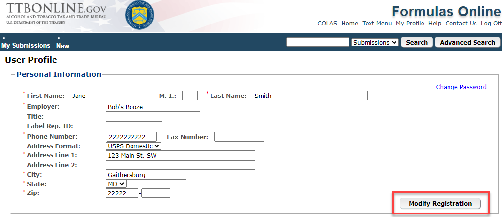 you can do so by making changes to your existing account registration. Once you modify your registration, the changes will be submitted to TTB and, if approved, TTB will update your account privileges.