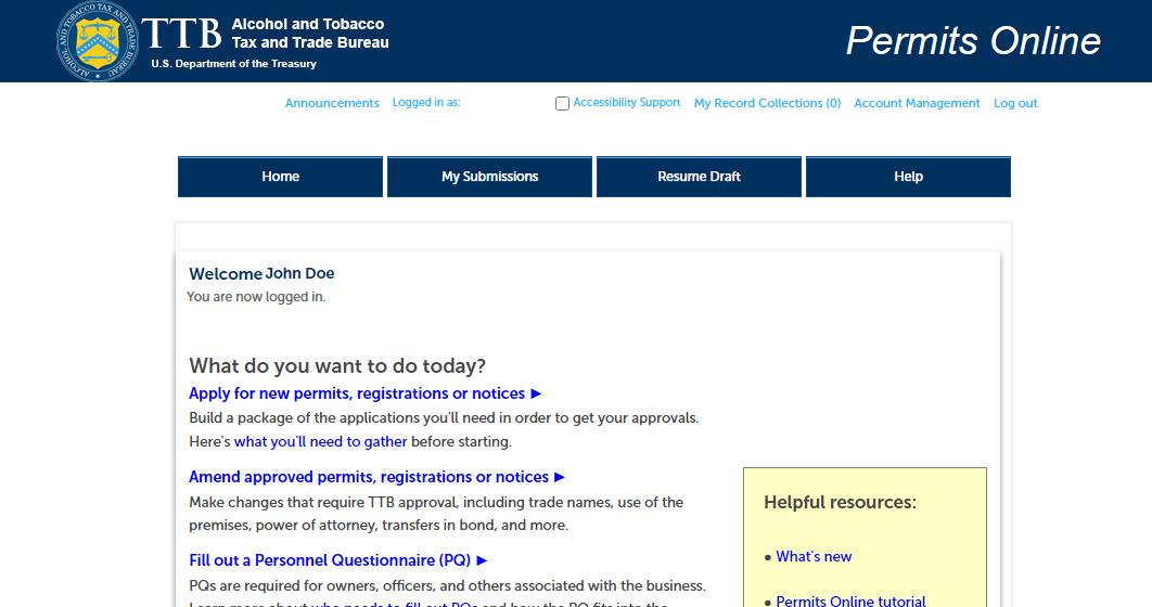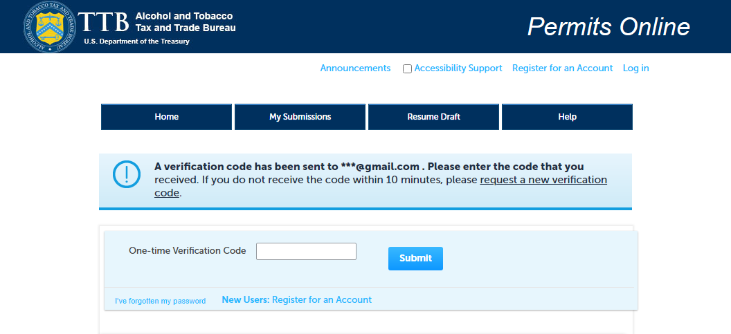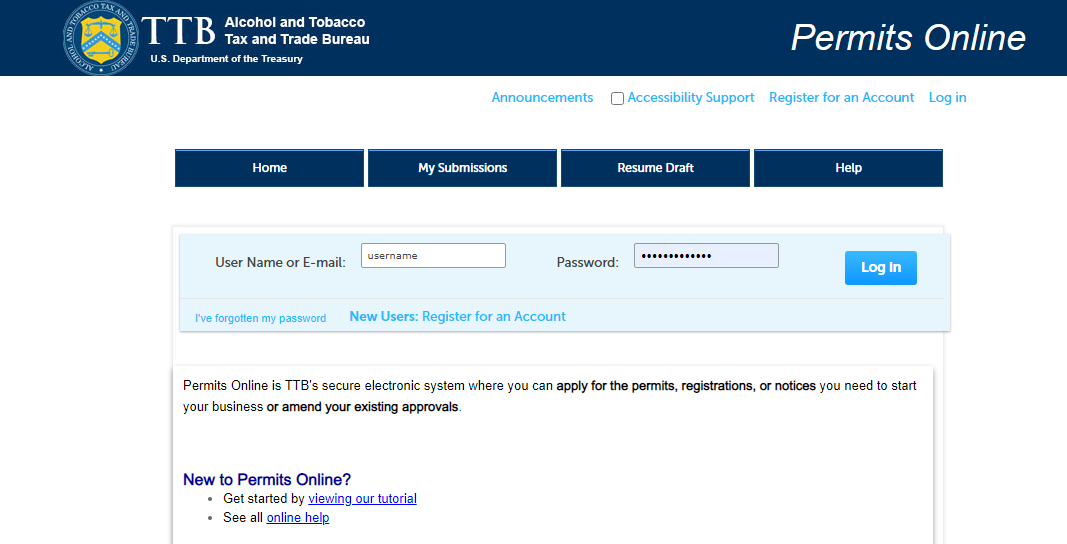 - Navigate to the Permits Online Login page (my.TTB.gov or Permits Online)