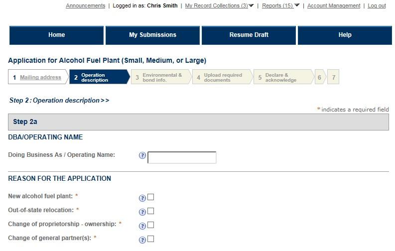 Note: This page contains instructions and screenshots so you can see what to expect when using Permits Online, our online method of applying for a TTB permit, registration, or notice.
