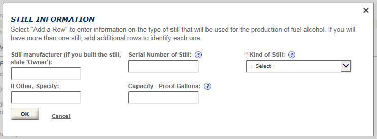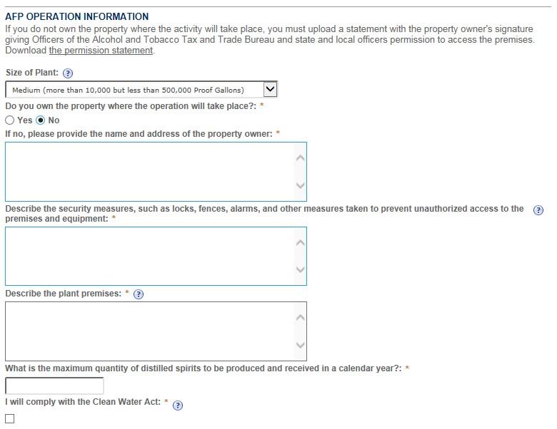 *If you do not own the property where the Alcohol Fuel Plant will be located, you will be asked to provide the owner's information.