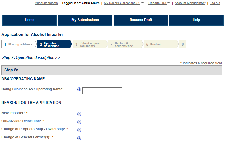 Note: This page contains instructions and screenshots so you can see what to expect when using Permits Online, our online method of applying for a TTB permit, registration, or notice.