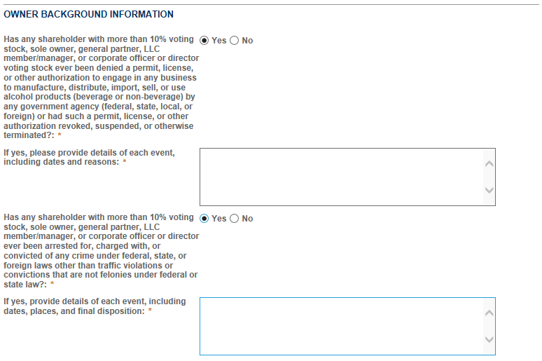 *If you select "Yes" to the above questions, you will need to detail each occurrence in the textboxes provided.