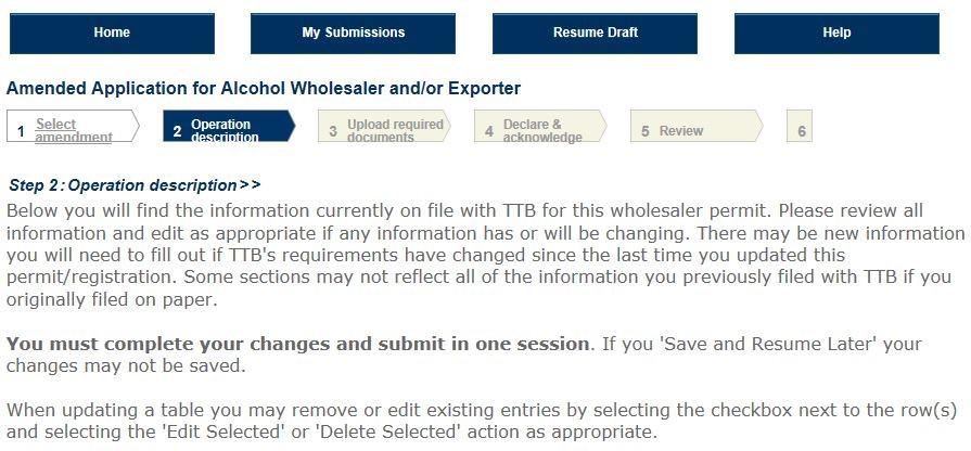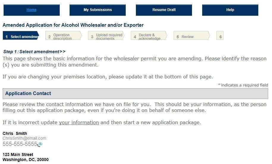 Permits Online: Preview the Amended Application for Alcohol Wholesaler