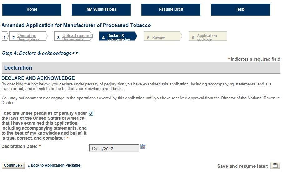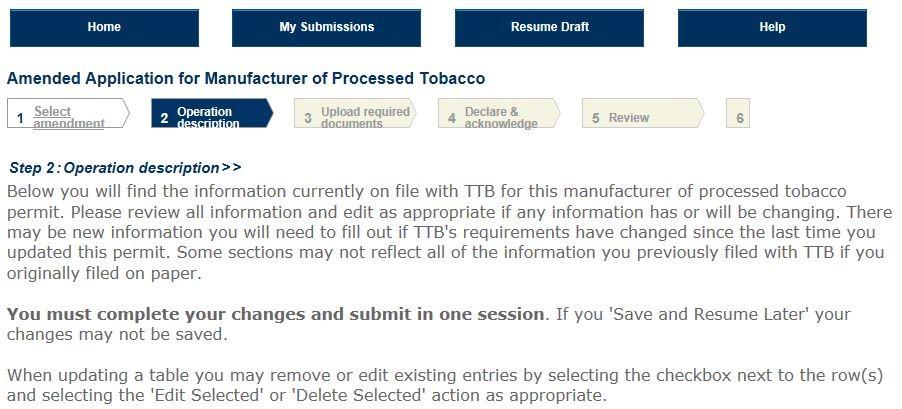 Amended Application for Manufacturers of Processed Tobacco