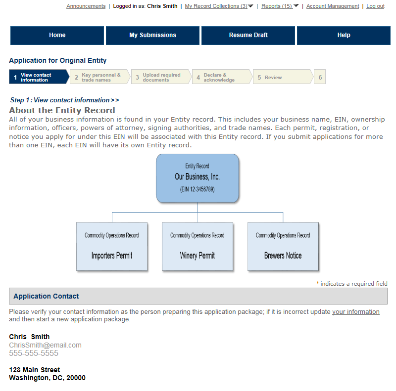 Note: This page contains instructions and screenshots so you can see what to expect when using Permits Online, our online method of applying for a TTB permit, registration, or notice.