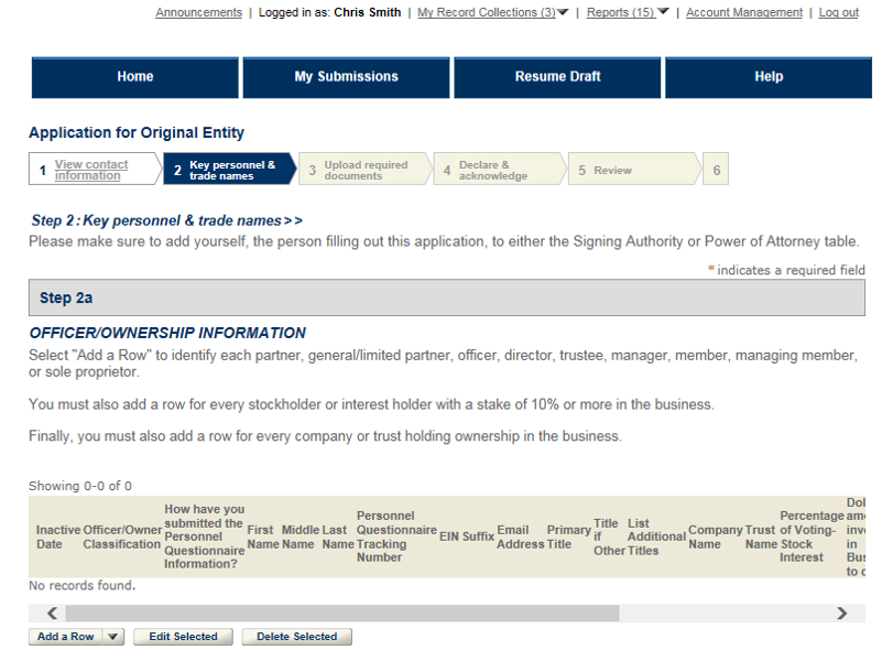 Step 2a: Key Personnel & Trade Names – Officer/Ownership Information
