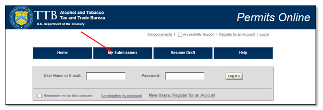 Note: This page contains instructions and screenshots so you can see what to expect when using Permits Online, our online method of applying for a TTB permit, registration, or notice.