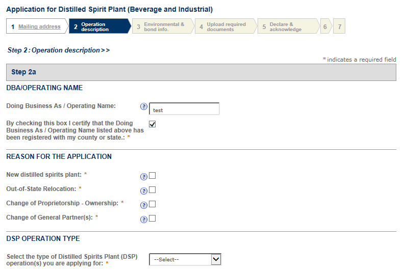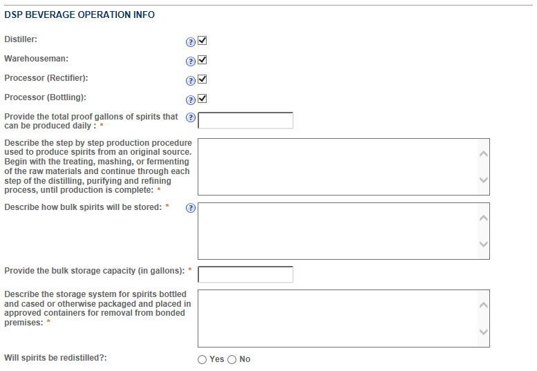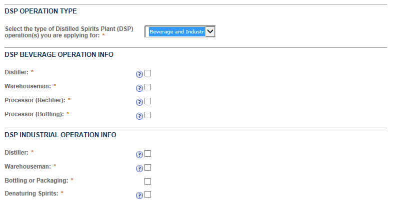 *Based on which type of DSP beverage operation you select, different questions will appear.