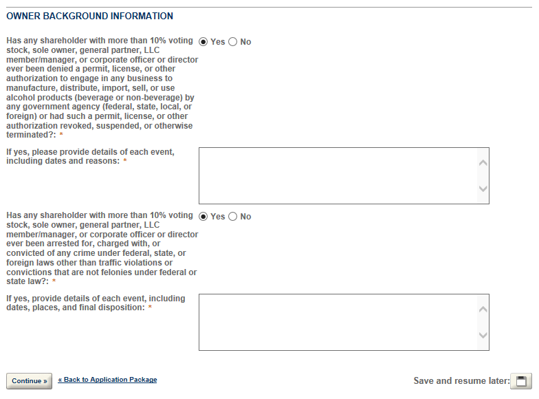 *If you select "Yes" to the above questions, you will need to provide details in text boxes provided.