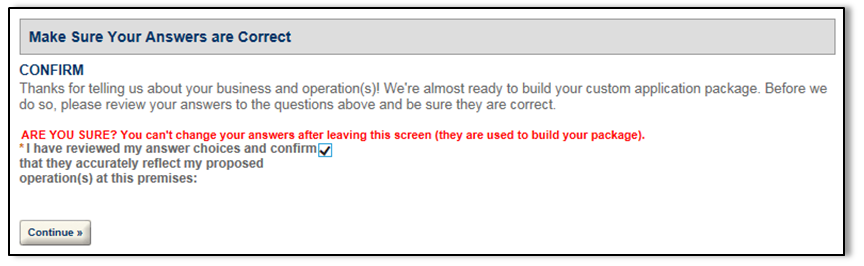 Each time you start a new or amendment application you'll answer a few questions in a wizard. You can change your answers on the first screen of the wizard up until you leave that screen. Once you leave that screen, you won't be able to change your answers (despite the Review screen that appears next), since the wizard uses them to build your package of applications.
