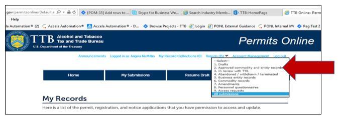 Click the My Submissions button