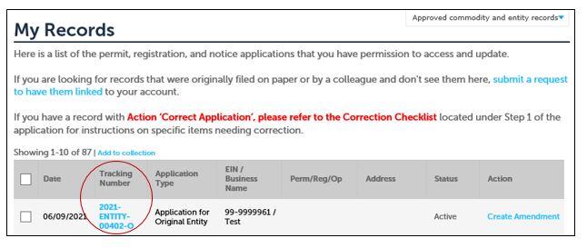 Locate the Tracking Number of the record you need to retrieve approval documents from and click on it