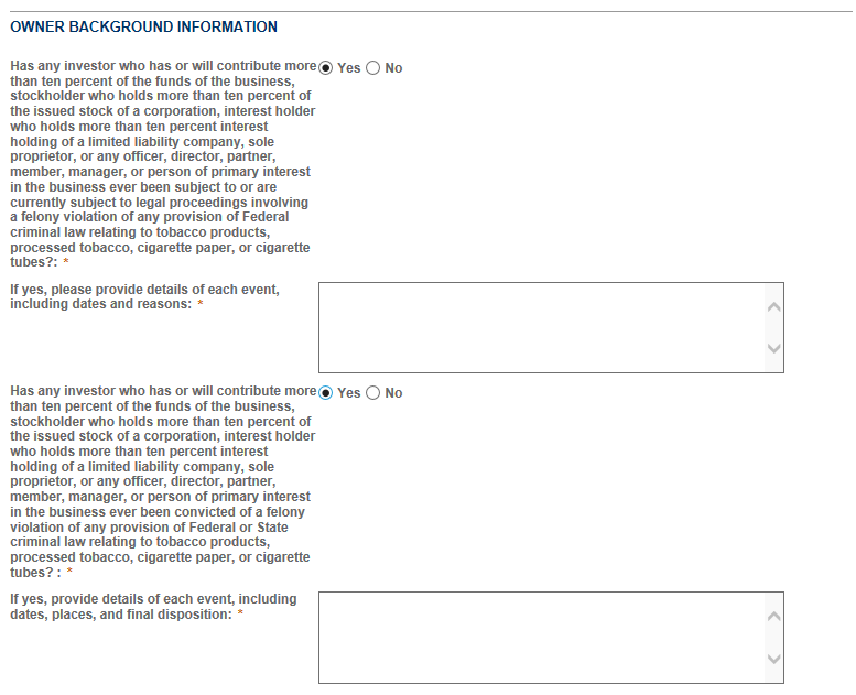 *If you select "Yes" to the above questions, you will need to detail each occurrence in the textboxes provided.