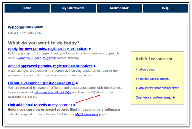 Note: This page contains instructions and screenshots so you can see what to expect when using Permits Online, our online method of applying for a TTB permit, registration, or notice.