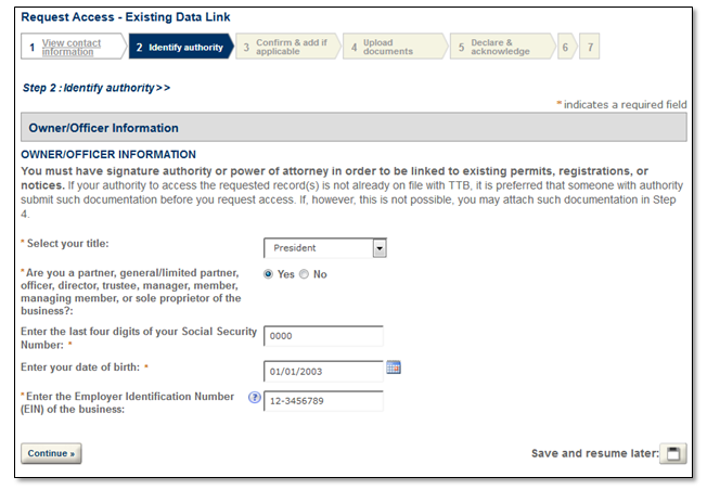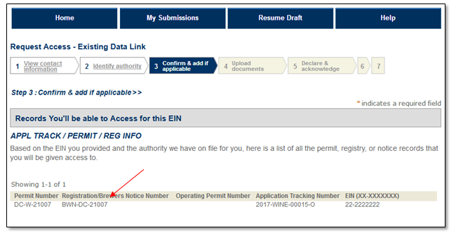 You must have signing authority or power of attorney on file with TTB before we can give you access to existing permits, registrations, or notices. Step 2 asks for the information we need to verify you have authority to access the records you seek.