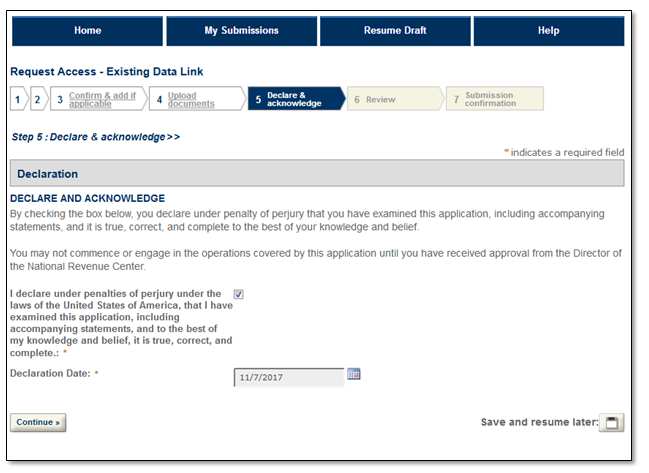 Read the statement and check the box, if applicable. Select the "Continue" button.