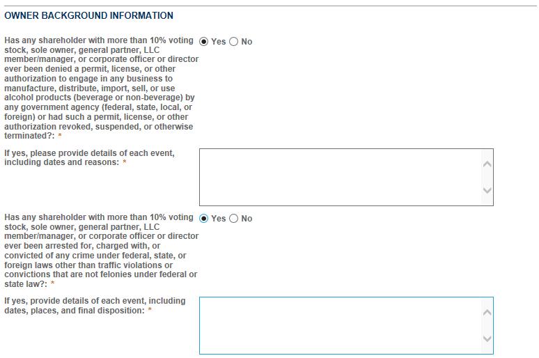 *If you select "Yes" to the above questions, you will need to detail each occurrence in the textboxes provided.