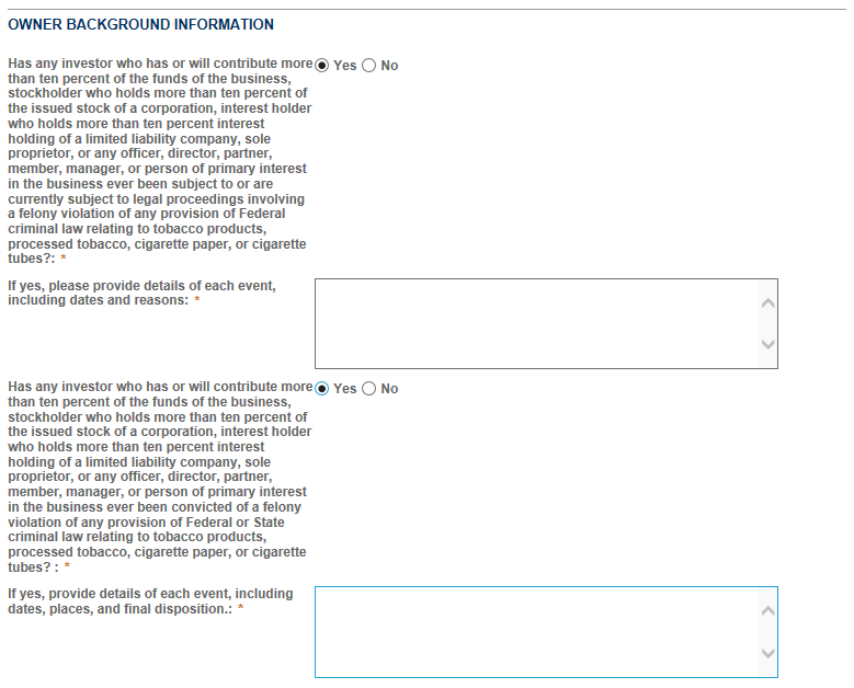*If you select "Yes" to the above questions, you will need to detail each occurrence in the textboxes provided.