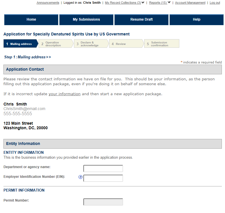 Note: This page contains instructions and screenshots so you can see what to expect when using Permits Online, our online method of applying for a TTB permit, registration, or notice.