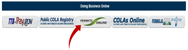 At your internet browser type in www.ttb.gov. Scroll down the page until you see a section titled “Doing Business Online”. Select Permits Online.