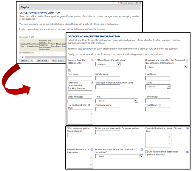In this section you have to identify each partner, officer, director, trustee, manager, member, managing member, and sole proprietor, in addition to any stock/interest holder with a stake of 10% or more of the business and any trust or company holding ownership in the company.