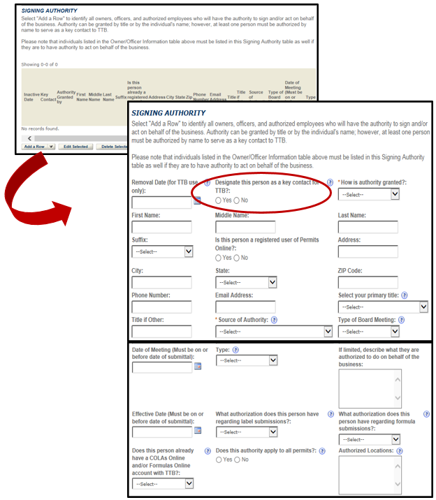 In this section you will list all owners, officers and authorized employees who will have the authority to submit applications in permits online, sign and/or act on behalf of the business.
