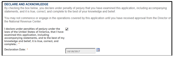 You will be asked to declare under penalty of perjury that you have examined the application and it is true, correct, and complete to the best of your knowledge and belief.