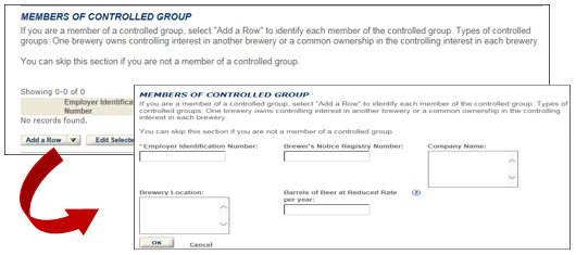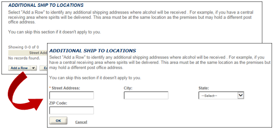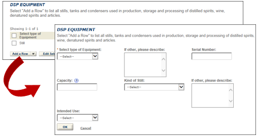 Select “Add a Row” to list all equipment used for production, processing and storage of spirits.