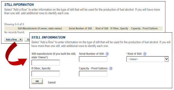 “Add a Row” to list the type of still that will be sued for the production of fuel alcohol.