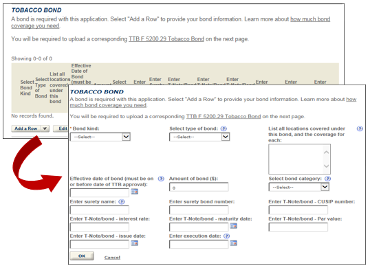 Select “Add a Row” to input bond information.