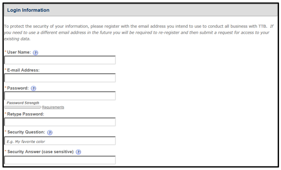 Note: This page contains instructions and screenshots so you can see what to expect when using Permits Online, our online method of applying for a TTB permit, registration, or notice.