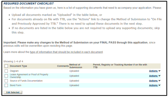 Based on the information you supplied for the commodity application, a list of supporting documents that need to accompany your application will be shown to you.