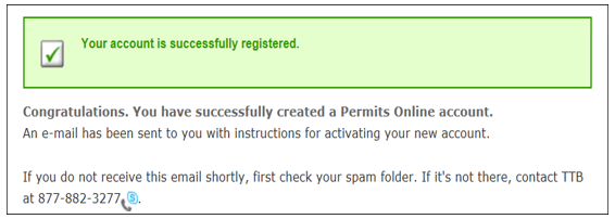 Once you complete the account registration you should see a notice that your account was successfully created.