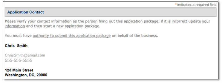 Application contact: The contact information shown should be for the person who is logged in to Permits Online. This is who TTB will contact if we have questions about the application.