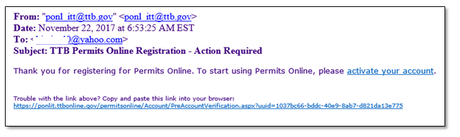 Account activation email: You must click the link in the email to complete your registration