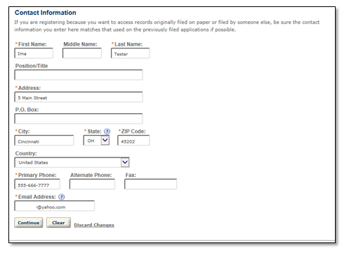 Important! Be sure to provide a valid email address when completing the contact information section of the registration. You will receive an email at that address which contains important information needed to activate your account. If you are unable to access this email, you will not be able to activate your account.