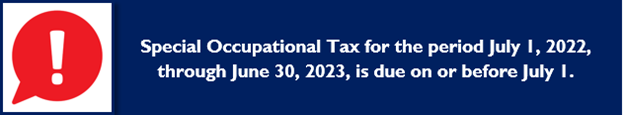 The July 1 due date for filing Special Occupational Tax (SOT) is right around the corner.