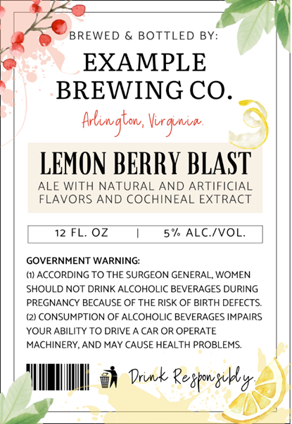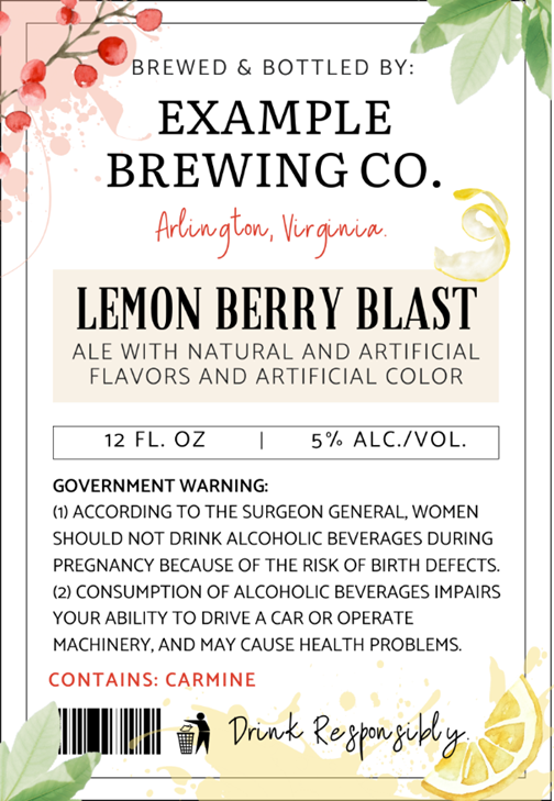 In the example above, the alcohol content statement is mandatory because the malt beverage product contains alcohol from the huckleberry flavor.
