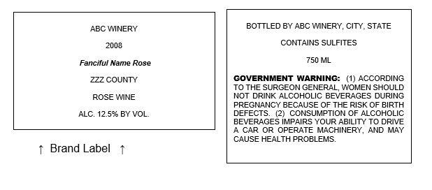 Other mandatory information (alcohol content, net contents, name and address, health warning statement, sulfite declaration, and disclosure of certain ingredients) may appear on any label.