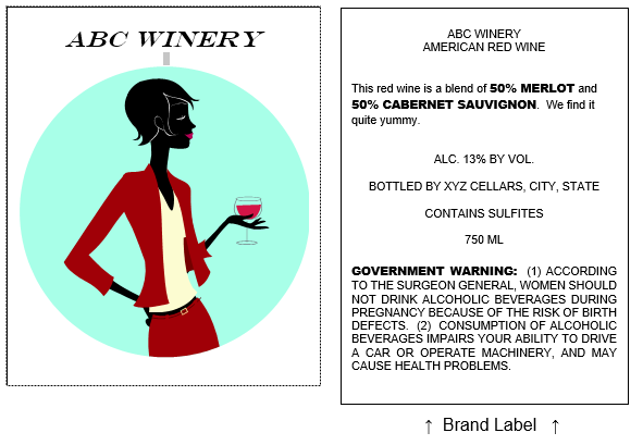 The brand label is the label carrying, in the usual distinctive design, the brand name of the wine. TTB regulations require that certain information appear on the brand label of a wine container. Other mandatory information, and additional information, may appear on any label.